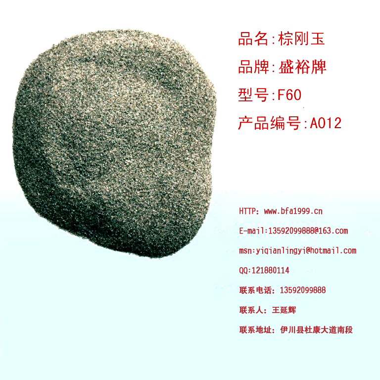 棕剛玉F60是我公司是專(zhuān)業(yè)生產(chǎn)棕剛玉的廠(chǎng)家,生產(chǎn)棕剛玉始于1999年,工廠(chǎng)在河南省洛陽(yáng)市伊川縣伊川縣杜康大道南段水廠(chǎng)南500米,我公司的產(chǎn)品全部是一級品。