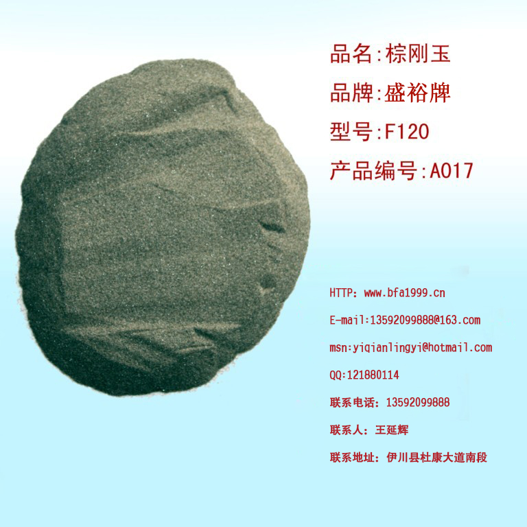 棕剛玉F120是我公司是專(zhuān)業(yè)生產(chǎn)棕剛玉的廠(chǎng)家,生產(chǎn)棕剛玉始于1999年,工廠(chǎng)在河南省洛陽(yáng)市伊川縣伊川縣杜康大道南段水廠(chǎng)南500米,我公司的產(chǎn)品全部是一級品。