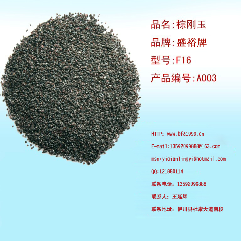 棕剛玉F16是我公司是專(zhuān)業(yè)生產(chǎn)棕剛玉的廠(chǎng)家,生產(chǎn)棕剛玉始于1999年,工廠(chǎng)在河南省洛陽(yáng)市伊川縣伊川縣杜康大道南段水廠(chǎng)南500米,我公司的產(chǎn)品全部是一級品。