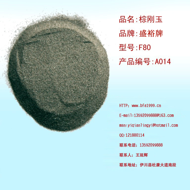 棕剛玉F80是我公司是專(zhuān)業(yè)生產(chǎn)棕剛玉的廠(chǎng)家,生產(chǎn)棕剛玉始于1999年,工廠(chǎng)在河南省洛陽(yáng)市伊川縣伊川縣杜康大道南段水廠(chǎng)南500米,我公司的產(chǎn)品全部是一級品。